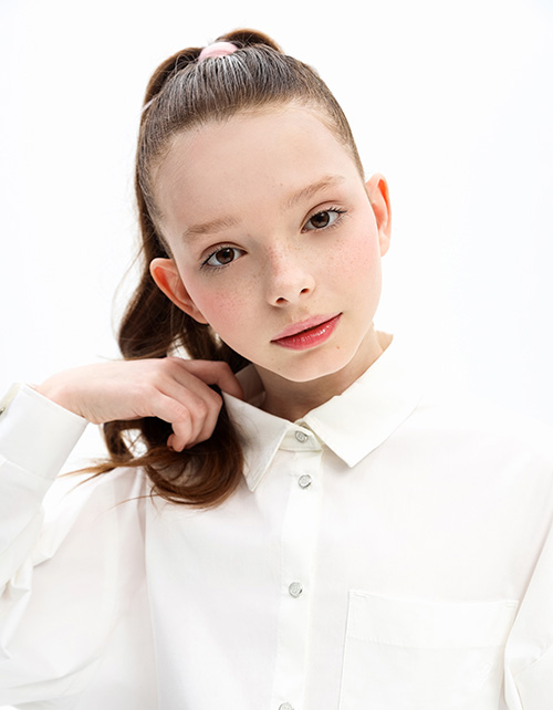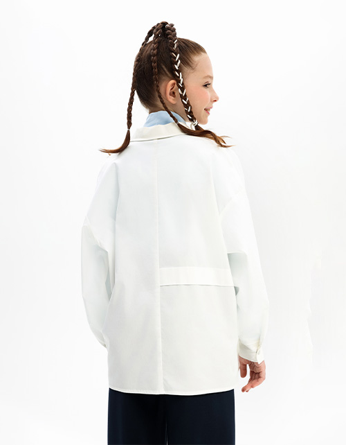 Лёгкая белая блузка прямого силуэта, декорированная изящной авторской вышивкой. Комфортная застёжка на кнопки. Накладной карман. Глубокий разрез с одной стороны. Складки-защипы на рукавах. Модель выполнена из качественного поплина для комфорта и стиля.