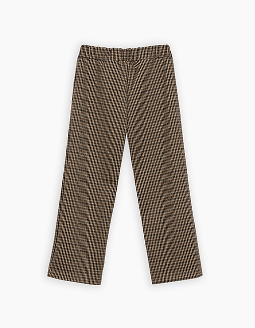 Стильные прямые брюки в клетку для девочки. Модель со средней посадкой на мягком поясе. Изделие с наклонными карманами. Брюки выполнены из плотного, мягкого и формоустойчивого трикотажного материала.