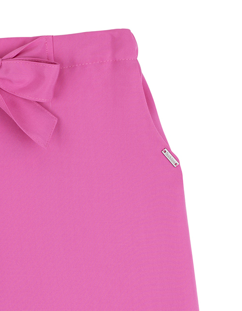 Розовые брюки-кюлоты для девочки свободного силуэта. Эластичная талия с завязывающимся бантом по переду. Функциональные карманы. Оформление в стилистике капсулы "Чаепитие в саду.
