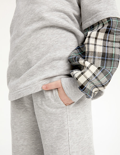Брюки оттенка серый-меланж для девочки. Комфортная прямая модель со средней посадкой. Изделие на эластичном поясе. Низ изделия с утяжкой. Брюки дополнены карманами в швах. Изделие декорировано авторским шрифтовым принтом.