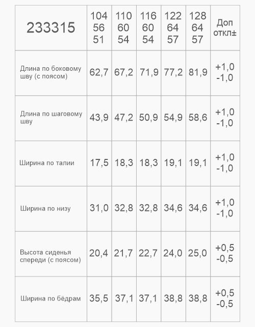 | Рост, см | 104 | 110 | 116 | 122 | 128 | 134 | 140 | 146 | 152 | 158 | 164 | 170 | 170 | 170 | 176 | 176 |