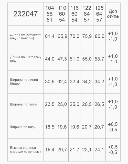 | Рост, см | 104 | 110 | 116 | 122 | 128 | 134 | 140 | 146 | 152 | 158 | 164 | 170 | 170 | 170 | 176 | 176 |