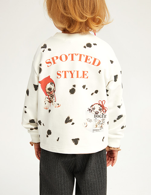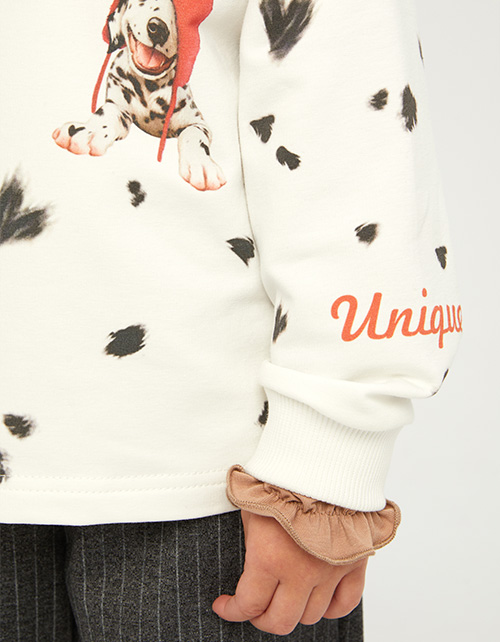 Свитшот оттенка молоко для девочки. Прямая модель. Приспущенная линия плеча. Манжеты и горловина из мягкой эластичной рибаны. Свитшот полностью декорирован авторскими принтами.