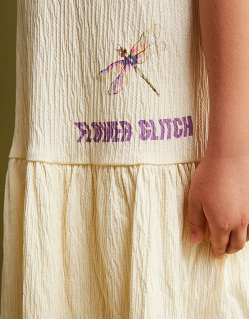 Лёгкое платье для девочки. Модель комфортного А-силуэта. Спущенная линия плеча. Изделие из материала с эффектом "жатости", не требующего глажки. Платье декорировано акцентным авторским принтом.
