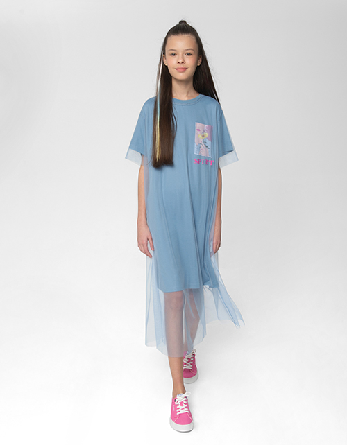 Светло-синее прямое платье
