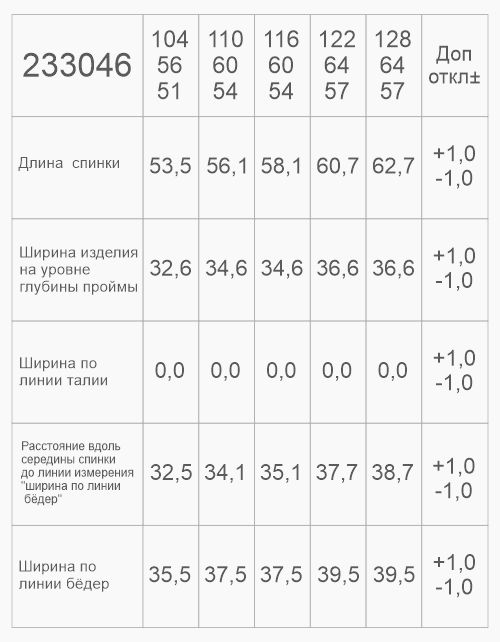 | Рост, см | 104 | 110 | 116 | 122 | 128 | 134 | 140 | 146 | 152 | 158 | 164 | 170 | 170 | 170 | 176 | 176 |