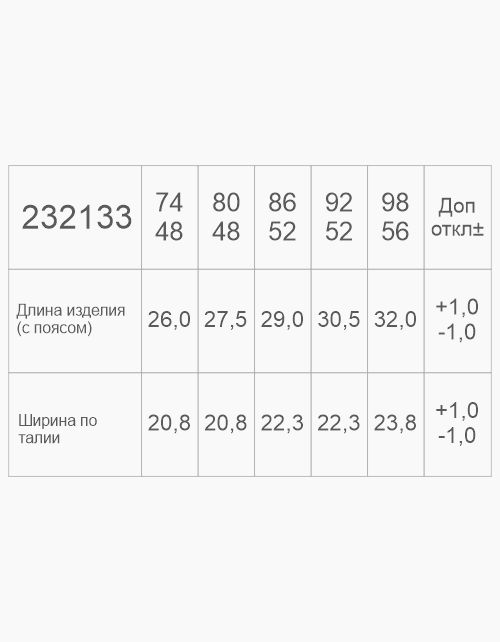 | Рост, см | 56 | 62 | 68 | 74 | 80 | 86 | 92 | 98 |
