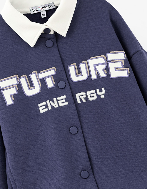Стильный жакет-поло из тактильно приятного материала для девочки. Комфортная прямая объёмная модель. Приспущенная линия плеча. Манжеты и низ изделия из мягкой эластичной рибаны. Комфортная застёжка на кнопки. Изделие декорировано авторской вышивкой.