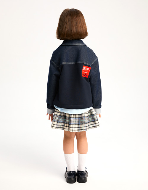 Стильный жакет оттенка деним. Прямая модель. Отложной воротник с отделкой. Приспущенная линия плеча. Отвороты по низу рукава. Комбинация футера и ткани под джинс. Жакет с застёжкой на кнопки дополнен накладными карманами. Авторская нашивка-лейба.