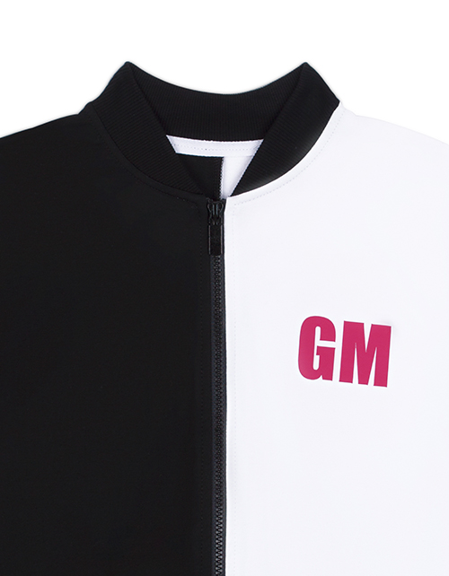 Черно-белый жакет для девочки. Манжеты и резинка из рибаны. Черная молния. Принт-надпись в стилистике капсулы "На своей волне" на лицевой стороне и спинке.
