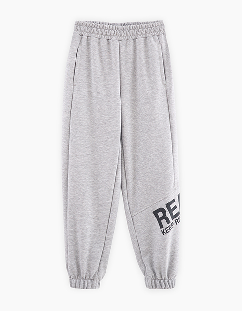Комфортные базовые брюки в оттенке серый меланж для мальчика. Прямая широкая модель. Мягкие манжеты по низу. Изделие на мягком поясе, со средней посадкой. Карманы в шве. Авторский шрифтовой принт. Составит расслабленный образ с артикулом 240119.