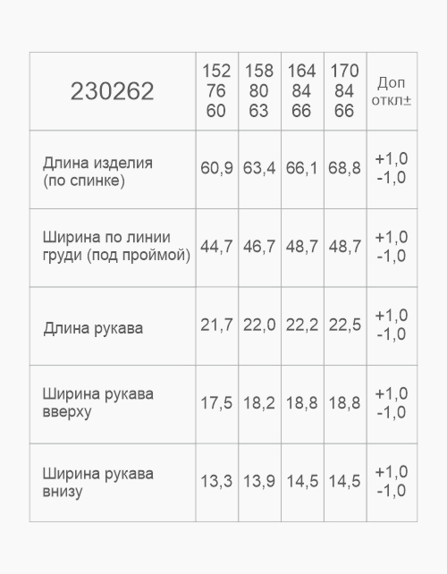 | Обхват груди, см | 56 | 60 | 60 | 64 | 64 | 68 | 72 | 72 | 76 | 80 | 84 | 84 | 88 | 92 | 88 | 92 |
