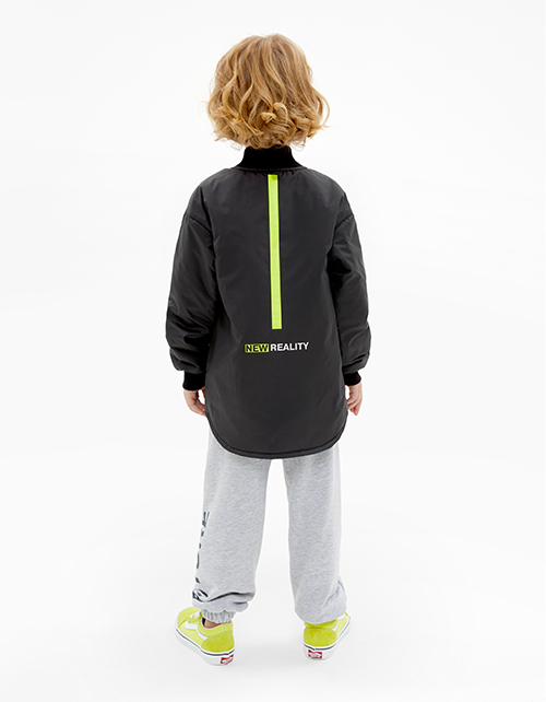 Двусторонняя весенняя куртка-бомбер для мальчика. Спущенная линия плеча. Воротник-стойка из рибаны. Плащёвая матовая ткань. Водо- и грязеотталкивающая пропитки. Наполнитель синтепон (80 гр). Авторский дизайн. Яркая, флюоресцентная лента на молнии.