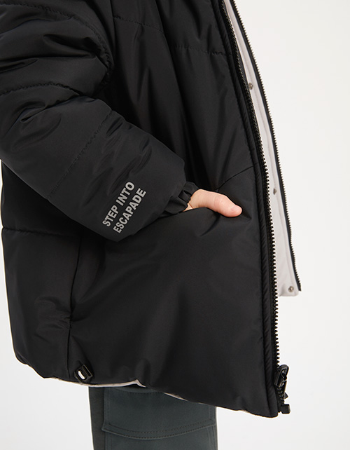 Силуэт-прямой, двухсторонняя модель, капюшон, регулировка по низу