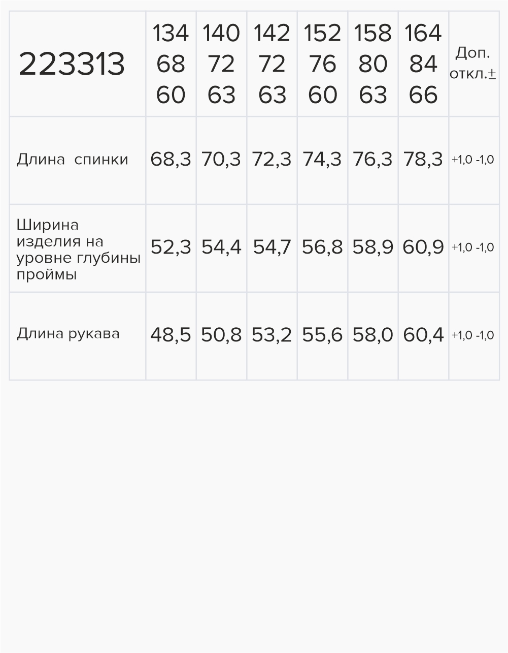 Таблица размеров