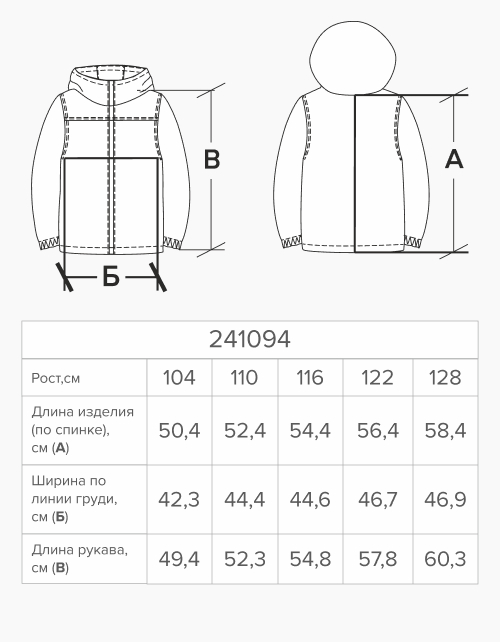 | Рост, см | 104 | 110 | 116 | 122 | 128 | 134 | 140 | 146 | 152 | 158 | 164 | 170 | 170 | 170 | 176 | 176 |