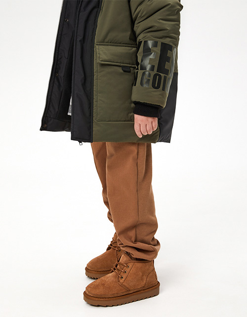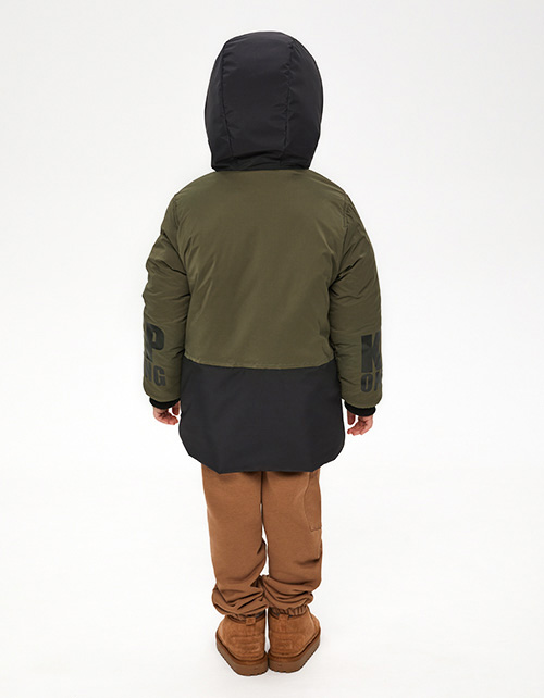 Куртка в оттенке олива на гипоаллергенном силиконизированном синтепоне. Капюшон с утяжкой. Ветрозащитная планка на кнопках. Эластичные трикотажные манжеты и воротник. Комбинированная подкладка из флиса и нейлона. Авторский декор. Рекомендовано до -20.
