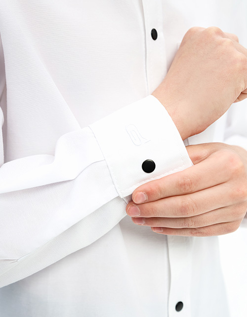 Белая рубашка прямого силуэта с длинным рукавом для мальчика. Приспущенная линия плеча. Защипы на спинке. Манжеты дополнены лаконичной авторской вышивкой. Рубашка с объёмным лаконичным карманом, как элементом утилитарного стиля.