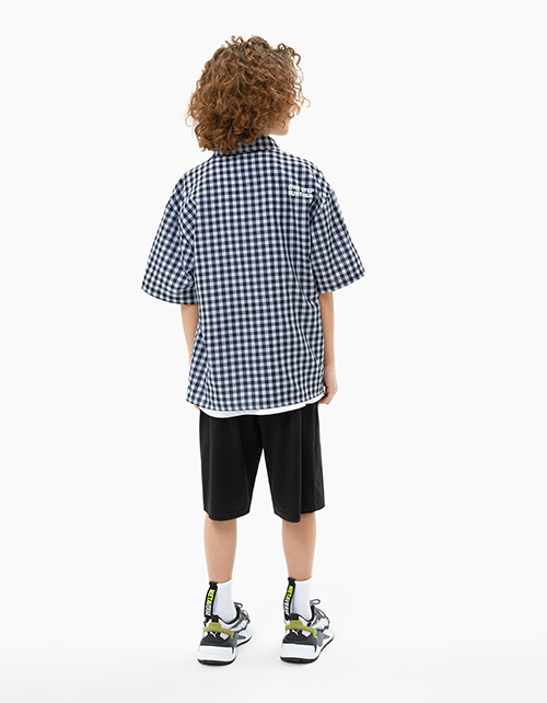 Клетчатая рубашка для мальчика. Модель прямого объёмного силуэта. Спущенная линия плеча. Комфортная застёжка на кнопки. Рубашка декорирована авторскими принтами. Составит модный образ с артикулами 240143 и 240140 или 241145 и 240141.