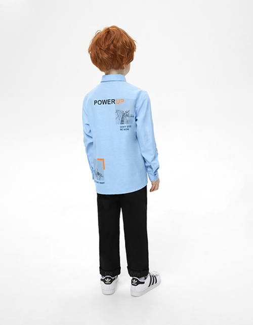 Светло-голубая рубашка прямого силуэта. Модель из сорочечной ткани с застёжкой на кнопки. Оригинальный дизайн позволяет гармонично вписать изделие одновременно в нарядный и базовый гардероб.