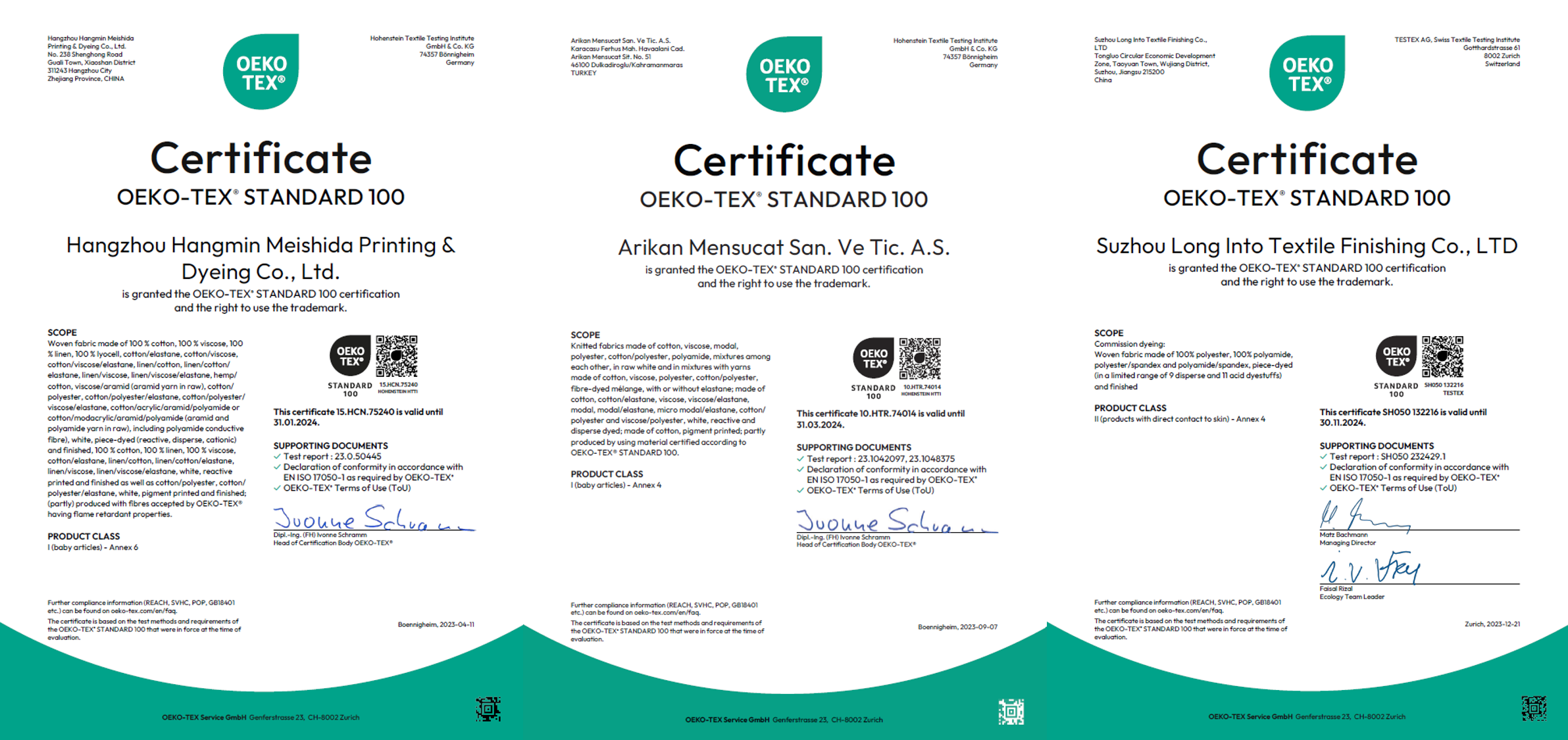 - Международные стандарты качества. Все изделия проходят испытания и получают сертификаты качества. Мы используем в своём производстве сырьё, которое имеет официальную сертификацию OEKO-TEX® STANDARD - глобального лидера оценки безопасности текстильной продукции.